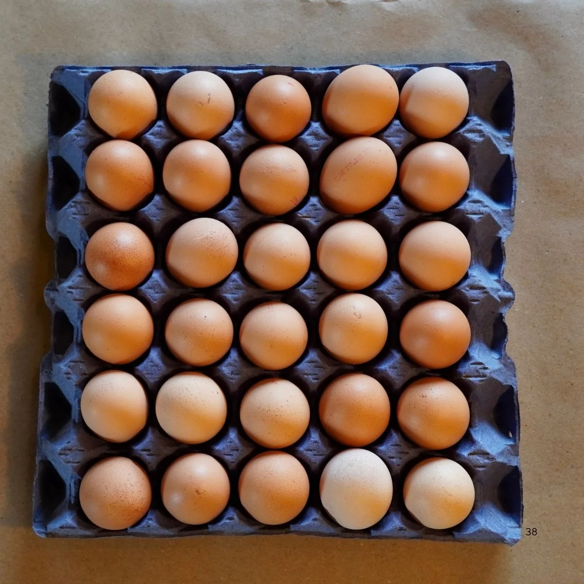 We source our eggs from Sharon at the Old Dairy Farm in Danehill. They are free range with over a hectare of land to roam during the day. The barn capacity legally for a free range bird is 6000 and Sharon keeps 5000 for extra room.