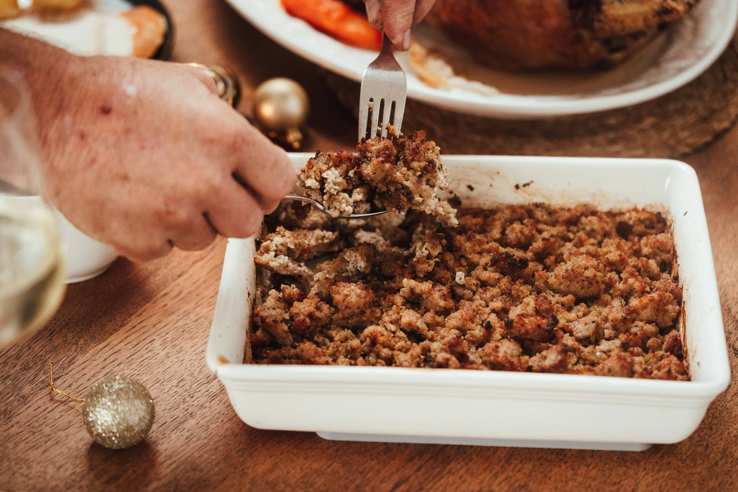 The pork sausagemeat will be lightly seasoned with salt and pepper, without any additives.